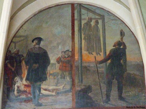 These Carthusian monks, among them scions of old English families, suffered martyrdom because they refused to take the Oath of Supremacy that made Henry VIII head of the Church of England.