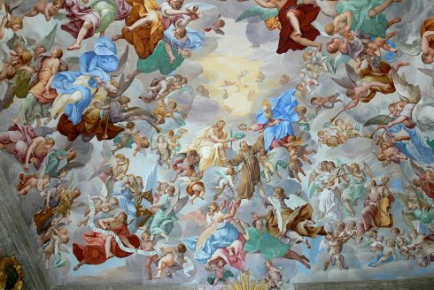 The coronation of Saint Francis by the Holy Trinity, Sacro Monte ( Orta ). Chapel 20: Fresco ( 1670 ) by Antonio Busca. Photo by Wolfgang Sauber