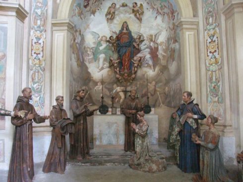 Crowds joyfully receive Saint Francis, as depicted at the Sacro Monte di Orta in Orta San Giulio, Piedmont.