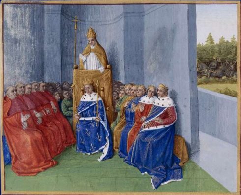 Pope Urban II preaching the First Crusade in the presence of Philip I, before the assembled bishops and princes.