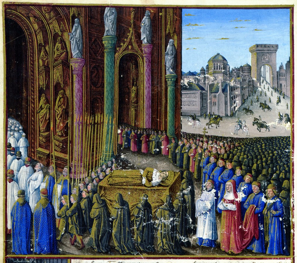 Funeral of Baldwin I, from the book: Les Passages d’outremer faits par les Français contre les Turcs depuis Charlemagne jusqu’en 1462.