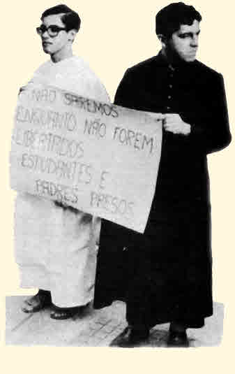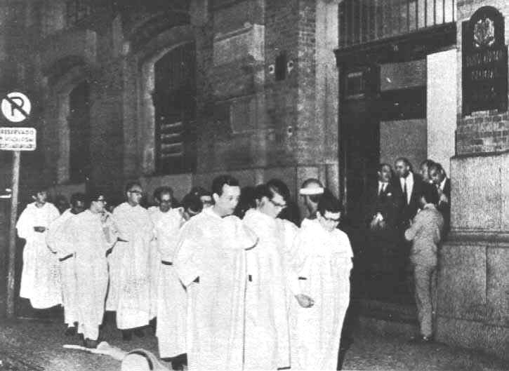 On August 2, 1967, the young Dominicans in the second picture marched in front of the building housing the Department of Political and Social Order (DPSO), in São Paulo. They were protesting the arrest of priests and students involved in a disturbance promoted by the UNE.